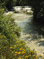 Le Moulin de Roquefavour, au bord de l'Arc, devenu successivement martinet à cuivre, moulin à farine, moulin à strontium et aujourd'hui, restauration -traiteur, dans