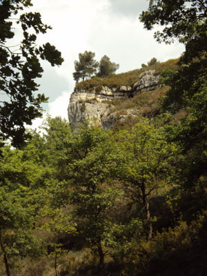 L'oppidum de Roquefavour est situé sur le plateau au-dessus de cette barre rocheuse qui borde la D 64.